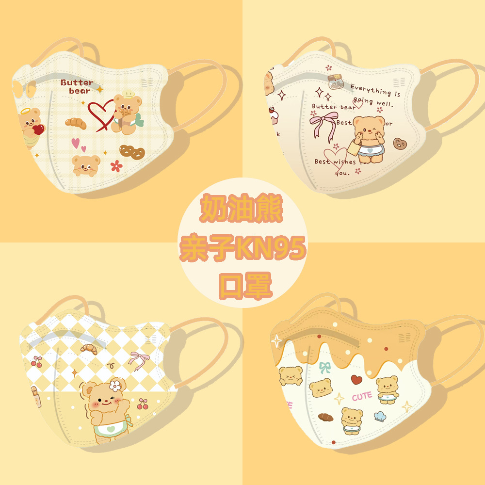 親子クリーム黄熊児童成人マスク専用KN95立体口耳カバー漫画模様学生保護