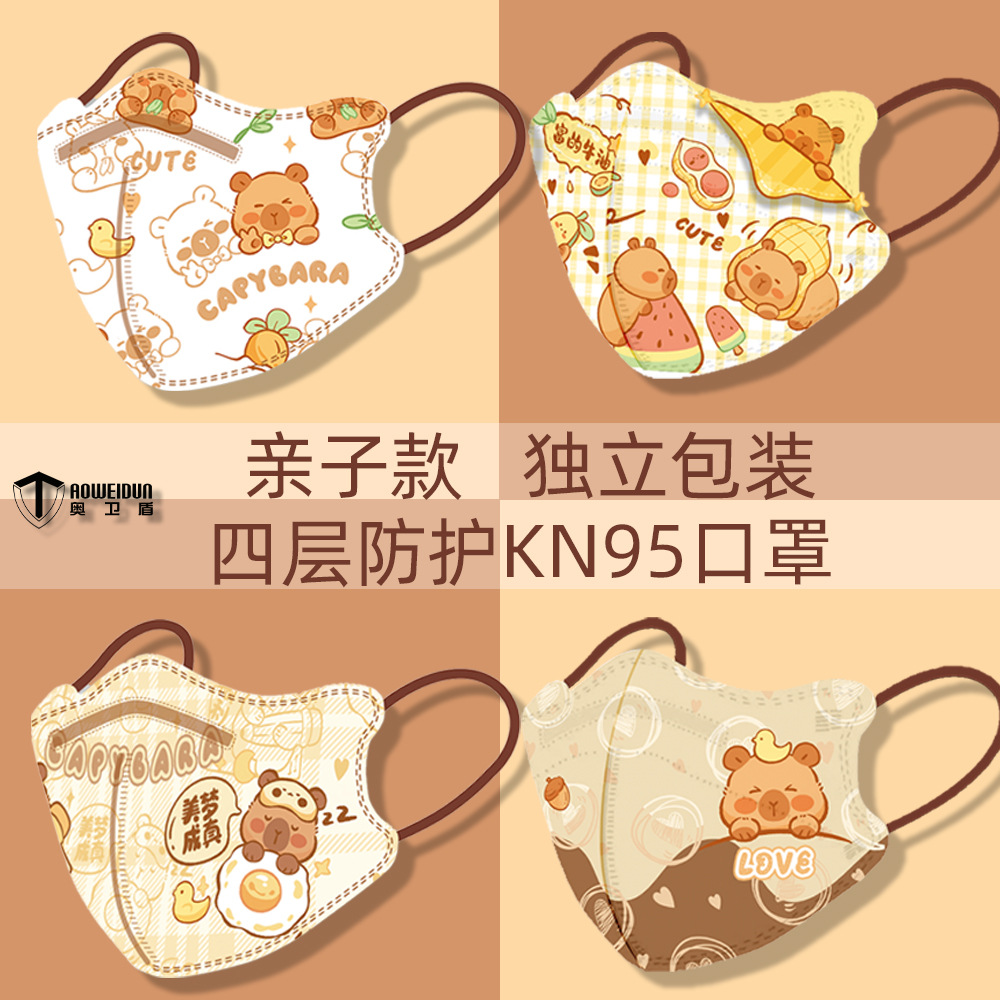 オリジナルのカピバラ四層立体Kn95マスク高颜値漫画プリント秋冬防塵学生マスク