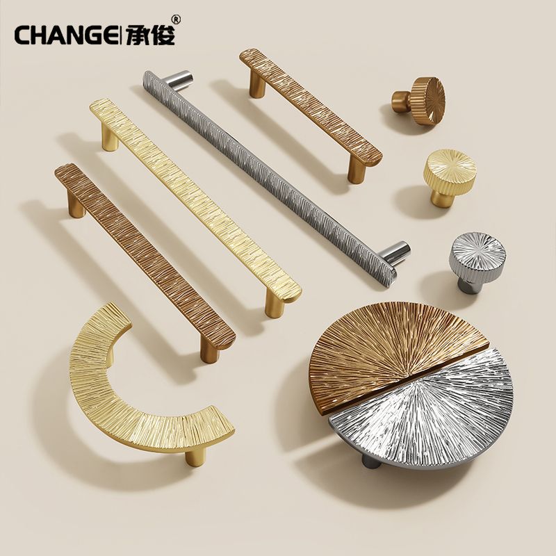锌合金直线锤纹半圆形金色把手轻奢抽屉柜门衣柜电镀中古风拉手