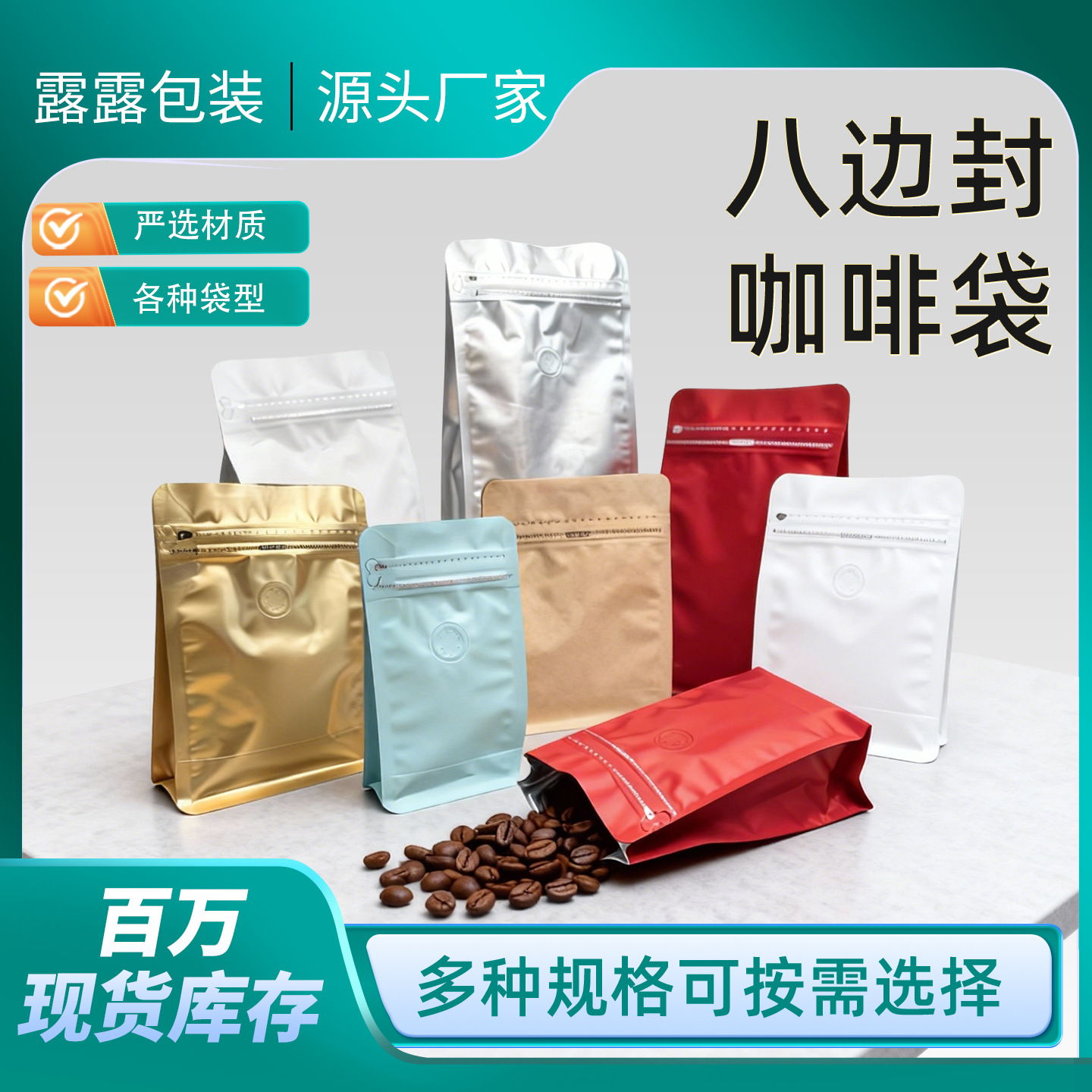 现货八边封咖啡豆袋食品袋自封自立袋茶叶零食气阀密封铝箔包装袋