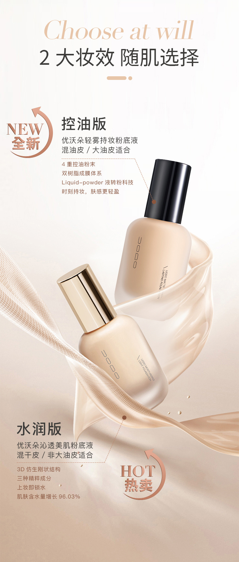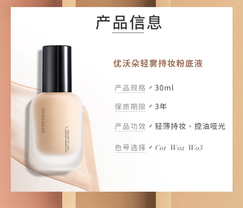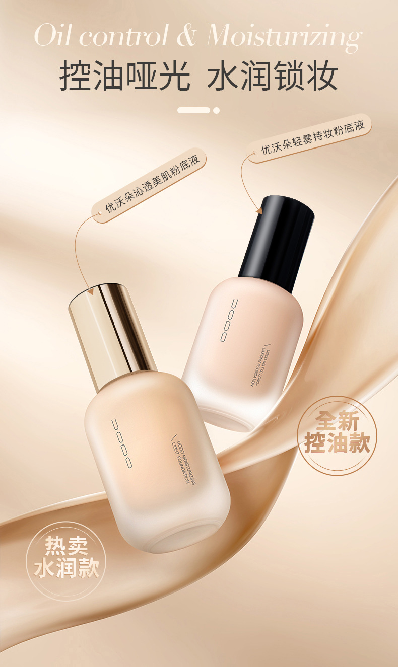 UODO优沃朵粉底液持妆水润遮瑕控油持久不脱妆女干油皮官方正品