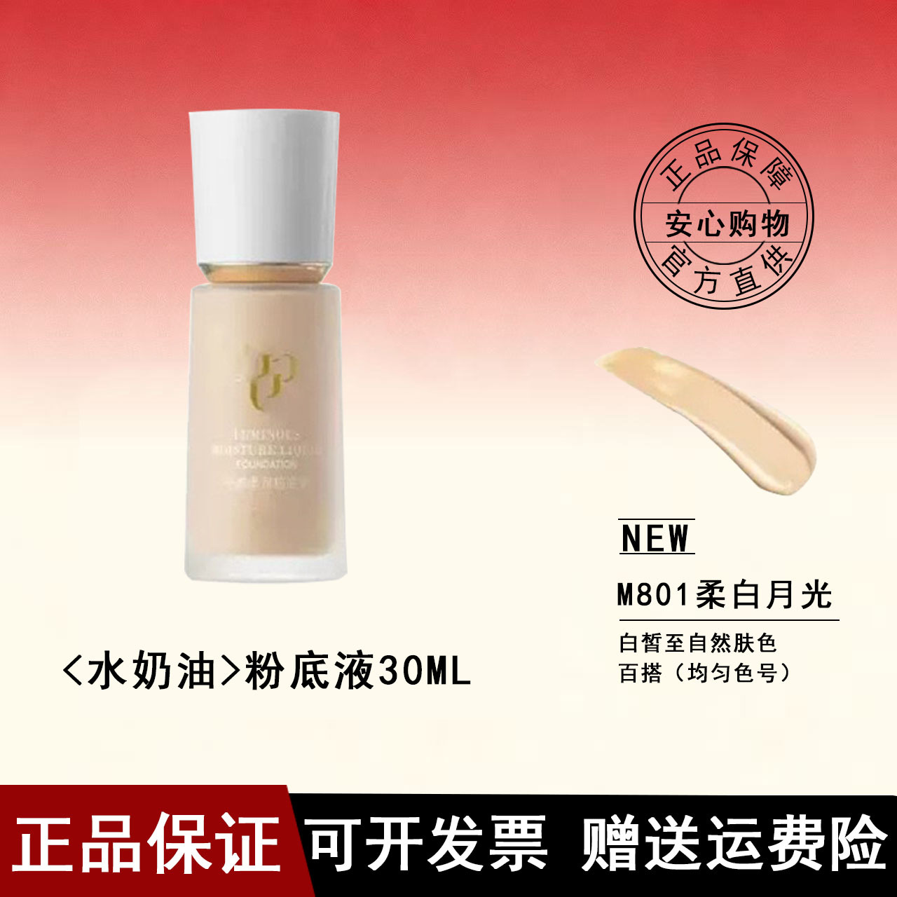 【官网】毛戈平粉底液水奶油光感柔润干皮奶油肌不脱妆801/800