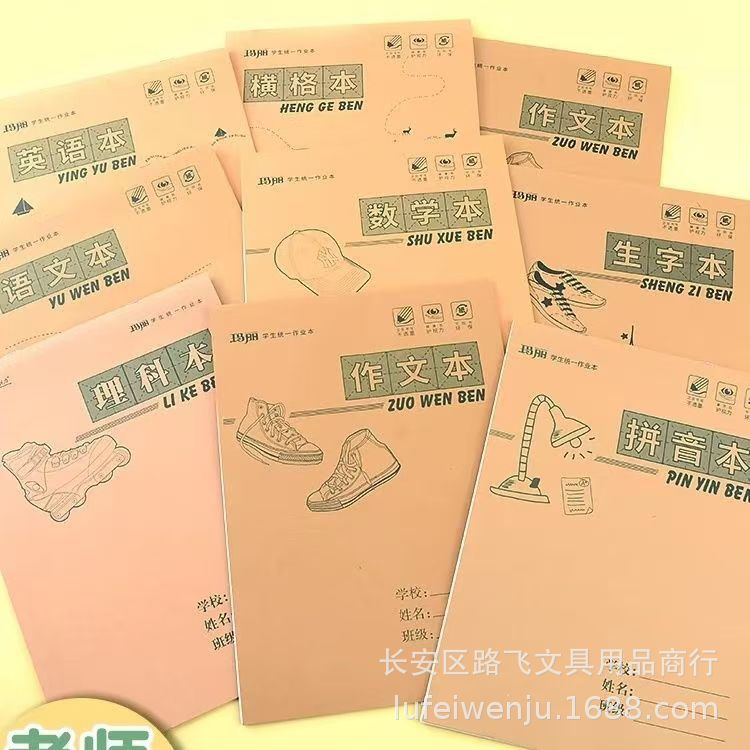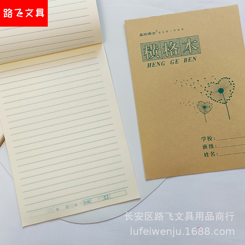 小学生の統一宿題帳の国語の数字と数字の作文の横格の英語の田格の方眼の絵の大本
