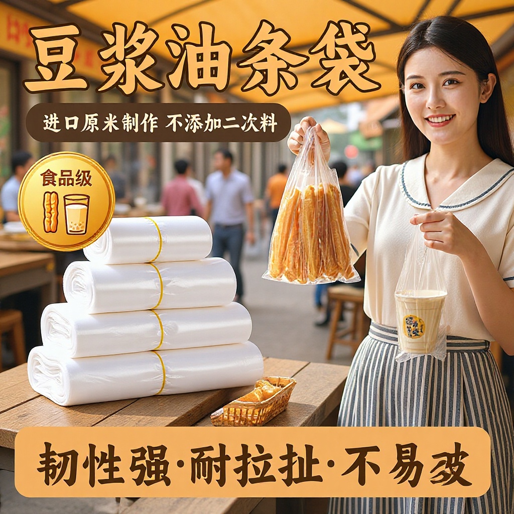 豆浆油条袋细长条烤串塑料袋白色透明方便袋外卖打包奶茶杯食品袋
