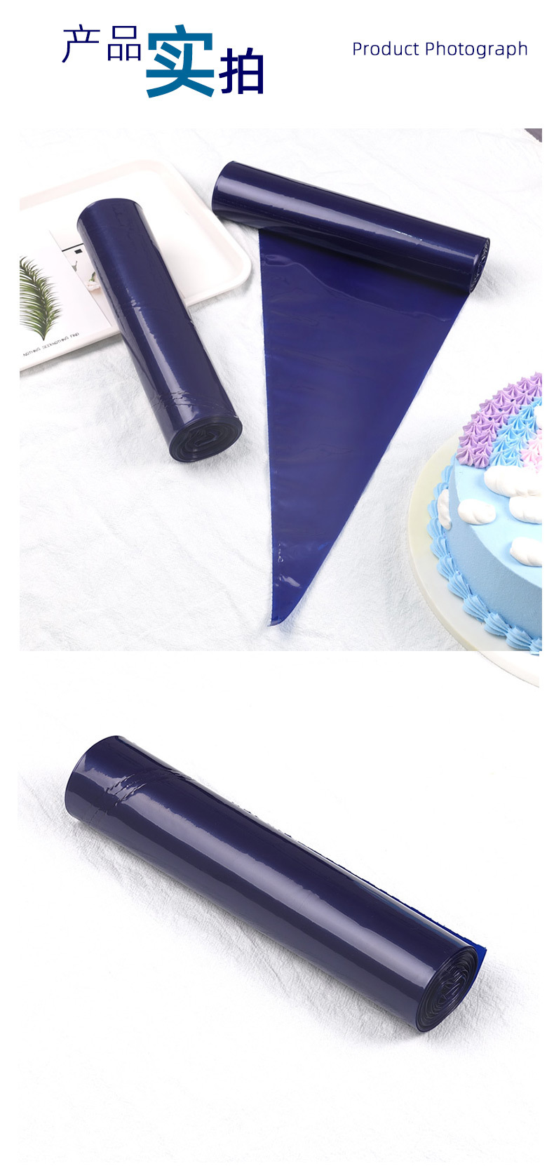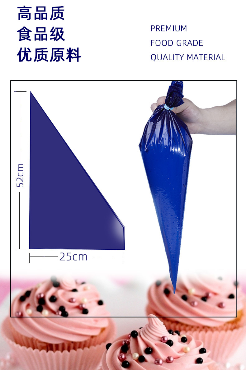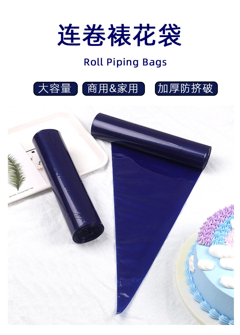 深蓝色等腰连卷裱花袋奶油袋糕点袋移液袋糖衣袋LDPE一次性挤花袋