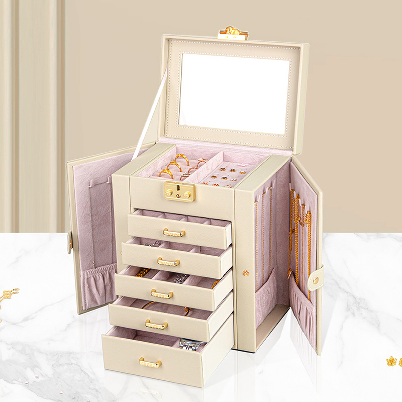 ジュエリーボックス収納ケース、家庭用、軽奢で精巧な多層式ジュエリー、時計、アクセサリー、2025年モデル、化粧箱、ネックレス