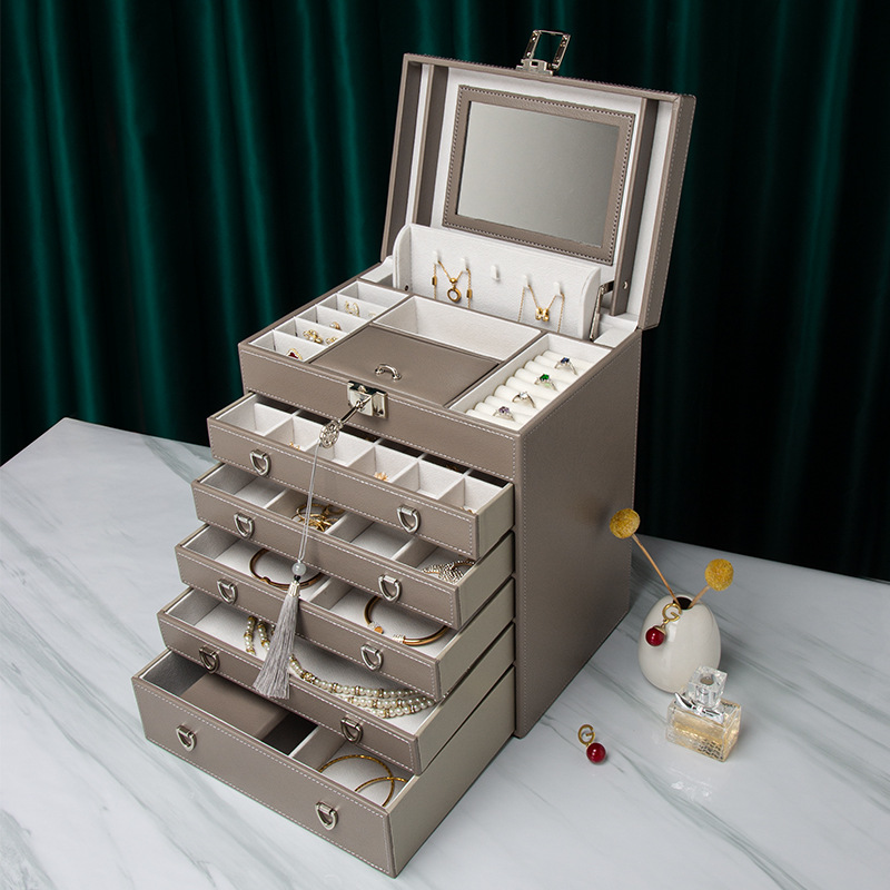 大容量のスーパーファイバーレザー大容量多層ボックスとレトロなタッセルキーロックジュエリーボックス