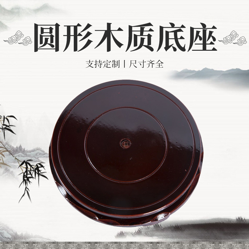 ベース卸売ラウンド木製ベース水槽奇妙な石仏像花瓶花盆栽ステッカー赤い布木製ベース