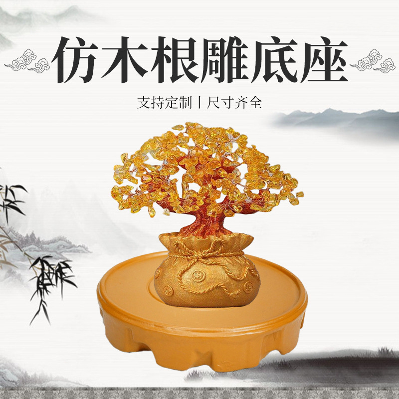 模造木根彫刻奇石銅器台座金魚鉢工芸品花瓶盆栽骨董仏像円形置物ブラケット