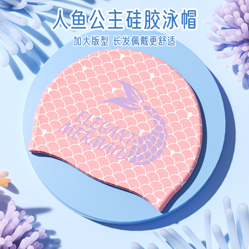 メーカー直販シリコン水泳帽女性防水首を絞めずに大型水泳帽ファッションプリント長髪専用快適