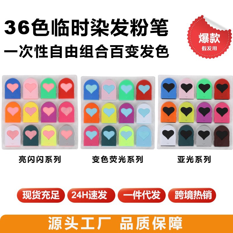 36色のヘアパウダー、ヘアチョーク、フルーティーフレーバー、発色しやすい、お手入れ簡単、変わりやすいヘアカラー、ヘアチョーク