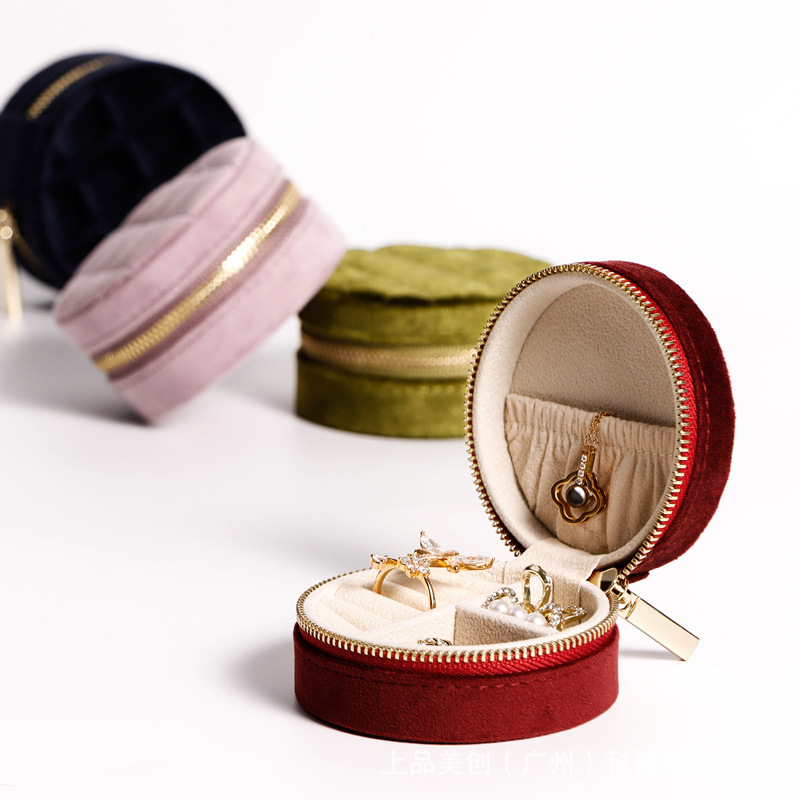 上品美創携帯アクセサリーケースイヤリング収納ケース円形フランス風ベルベットアクセサリー収納バッグ卸売り