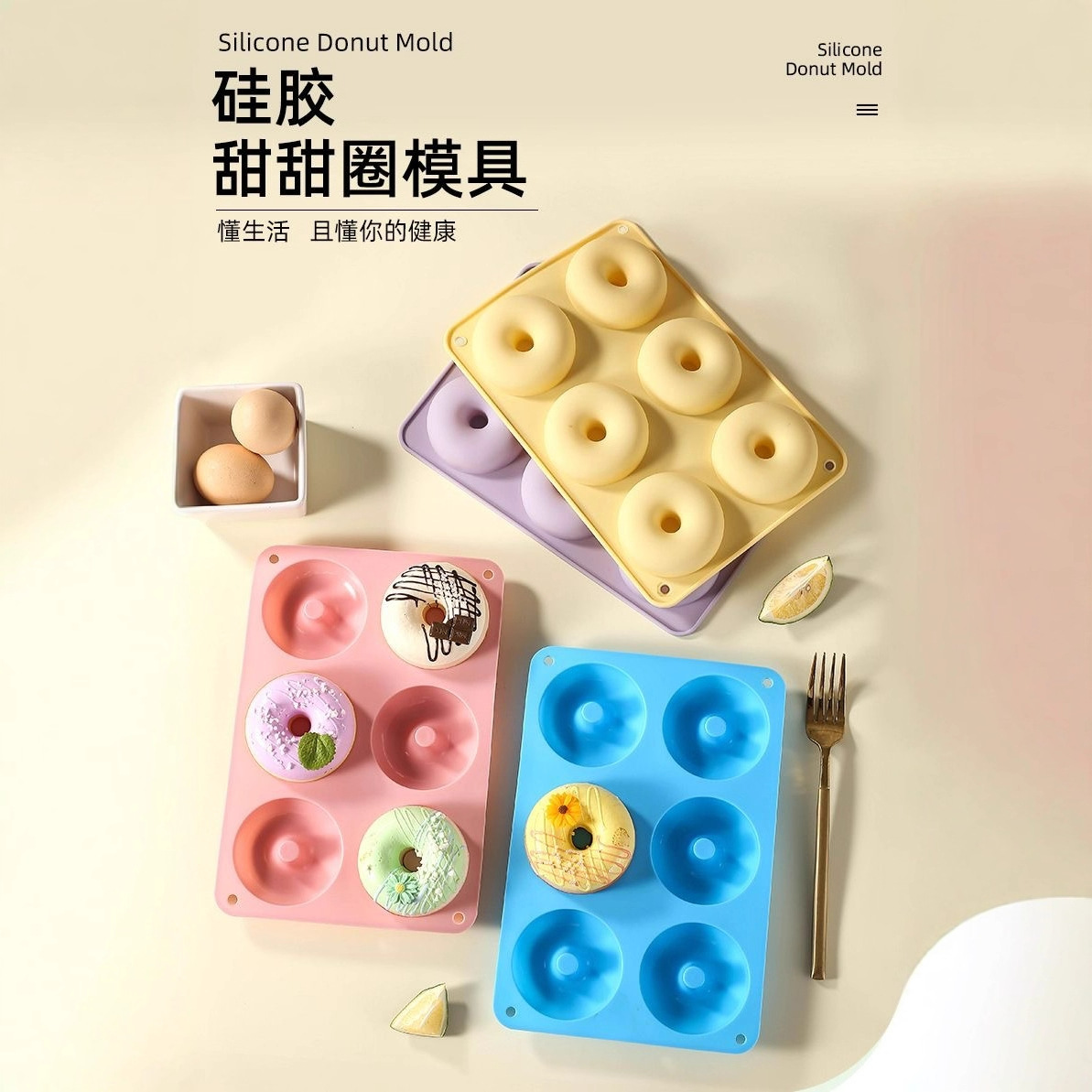 クロスボーダー6ピースシリコンドーナツ型DIY手作りケーキ型高温耐性ベーキングラウンドケーキツール卸売
