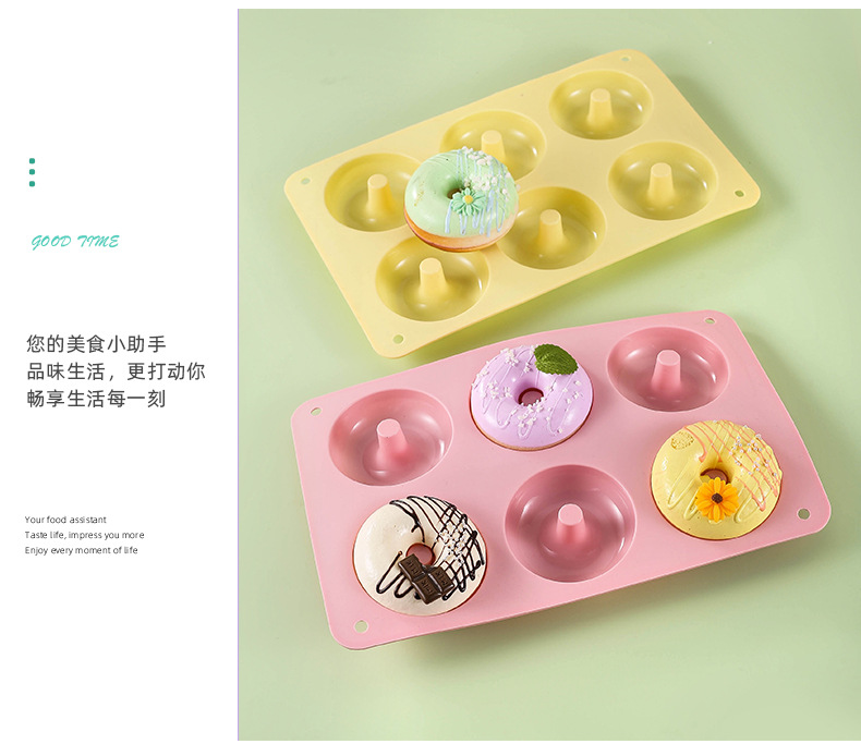 6連食品級シリコンドーナツマカロン色円形ドーナツ金型クッキー焙煎ツール