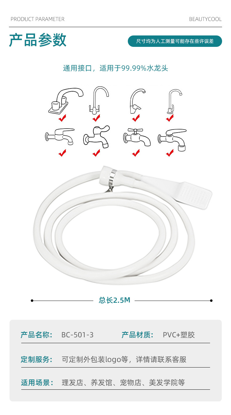 メーカー卸売りプラスチックの花こぼれホースの花こぼれ2.5mとロングタイプのペットショップのペット入浴ノズルの水道管