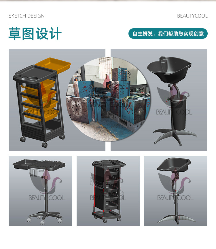 美容院美発車理髪店ヘアサロンツールカート5階プーリー手押しカートメーカー卸売り