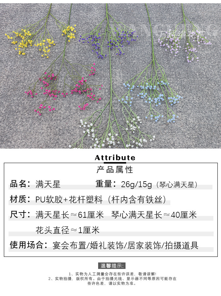 満天の星の花嫁の結婚祝いの装飾の手の花の束のプラスチックの柔らかいゴムの手触りの3叉の満天の星のシミュレーションの花