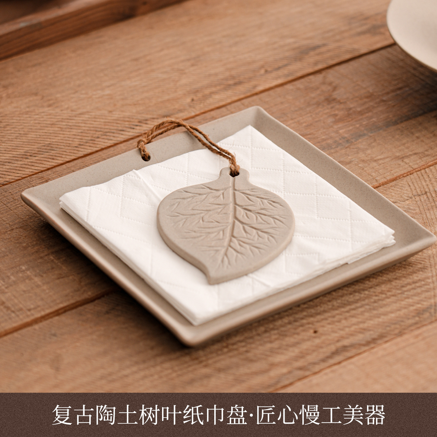 中古风陶土定点纸巾架纸巾盒抽纸盒咖啡酒店商用家用餐厅桌面巾架