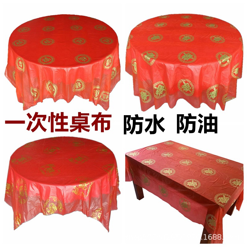 使い捨てテーブルクロス結婚用結婚式披露宴赤い結婚式の酒席はお祝いの字の円卓のお祝いのテーブルクロスを厚くします。