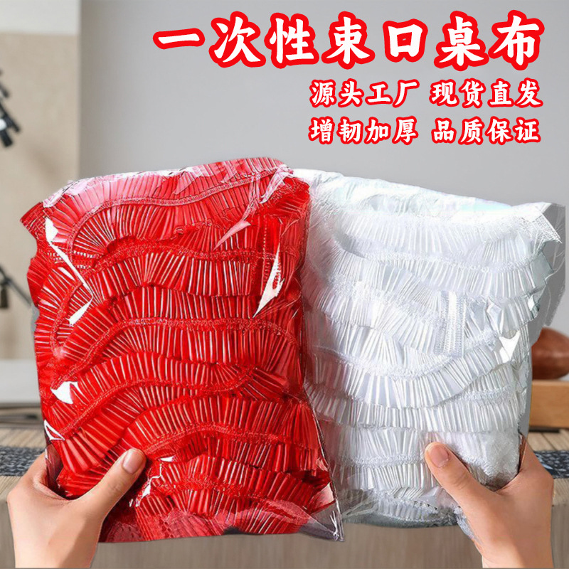 餐桌一次性桌布束口松紧带圆桌长方形桌子塑料布薄膜台布套红色