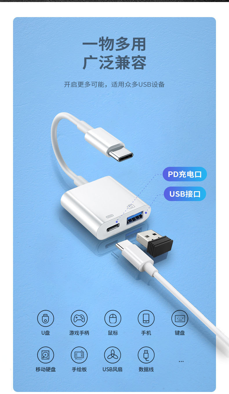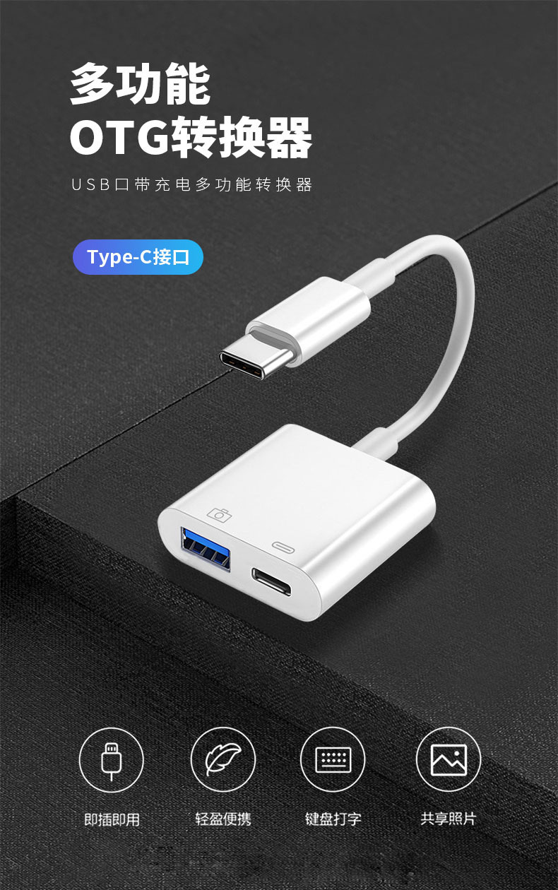 華為携帯電話パソコンusb + TYPE-C充電pd otg変換線2 in 1多機能変換器を適用する