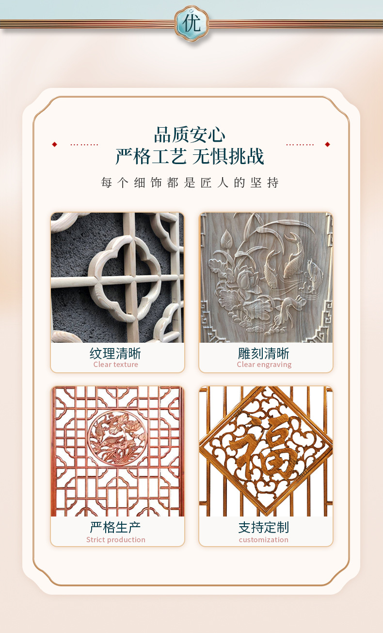 カスタム輸出用ブラインド、カスタム折りたたみ式古民家ブラインド、カスタム東陽木彫りブラインド