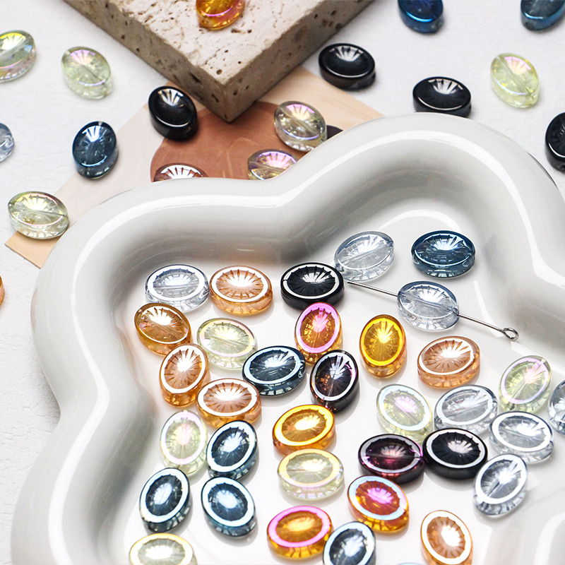 【繁花】シリーズ楕円形レトロ模様瑠璃チェコビーズオーロラ幻彩散珠diy手作りビーズ