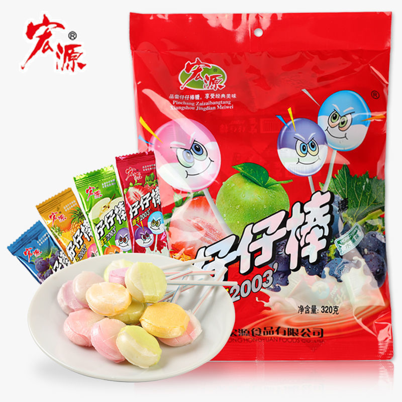宏源仔仔棒アメ卸売り高颜値児童硬糖子棒混合味キャンディー箱卸売り