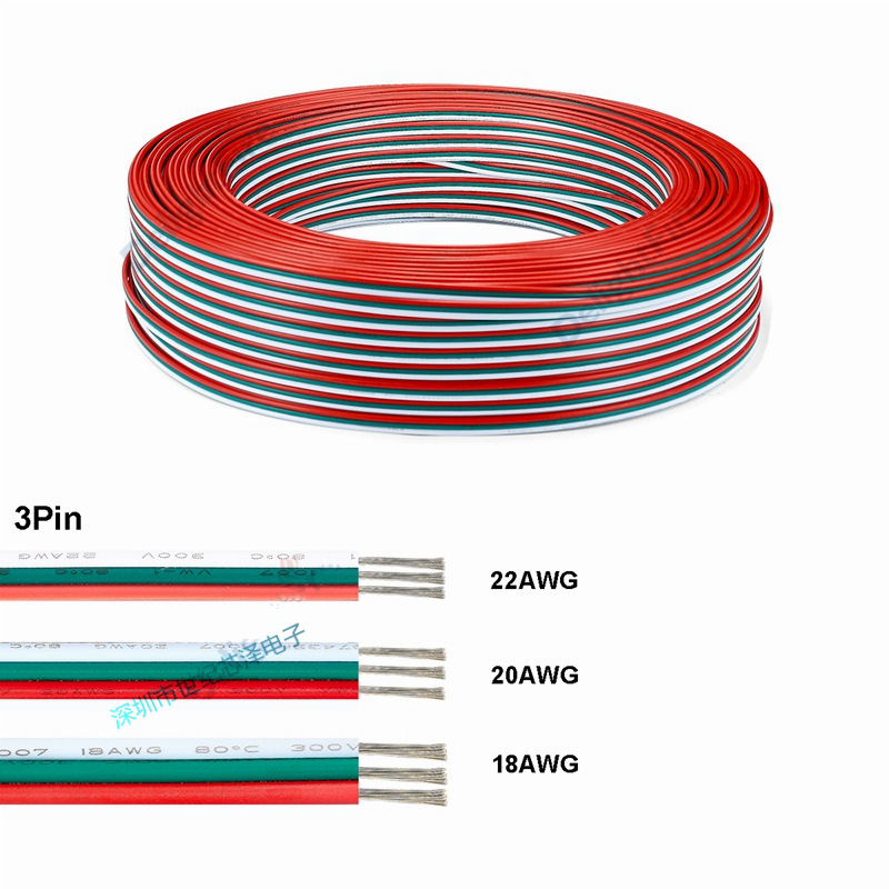 3Pin リハーサルとライン 1007 # 22/20 ライン低電圧 LED ライトストリップ延長ライン 3 コア電子ライン 0.75