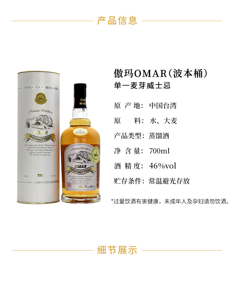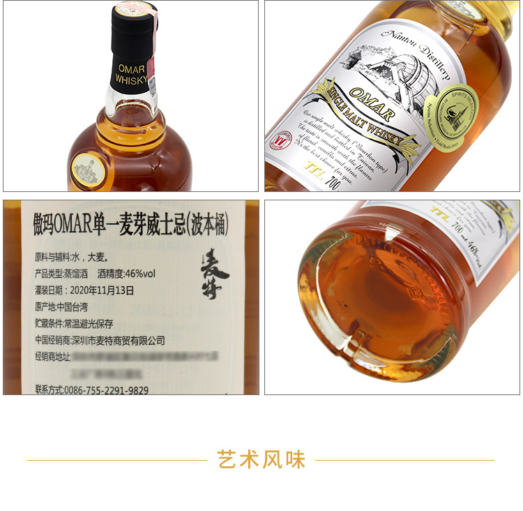 中国台湾の自慢の馬omar波本の花の香りの単一のモルトウイスキーの強い酒の正規品の洋酒の700ml