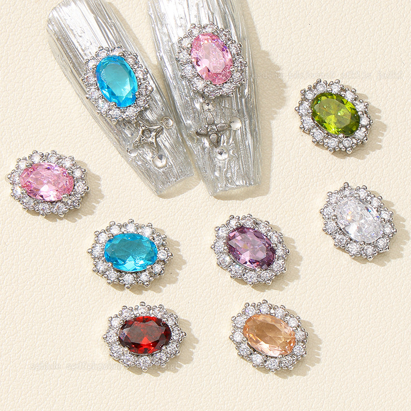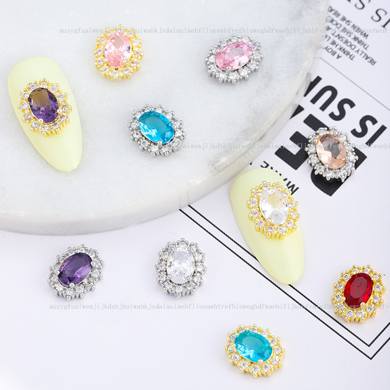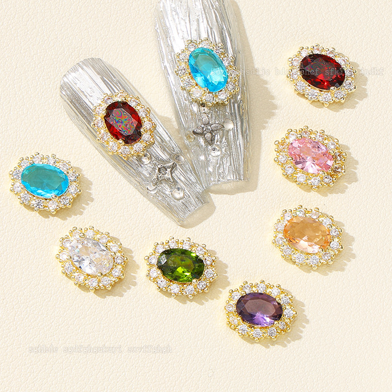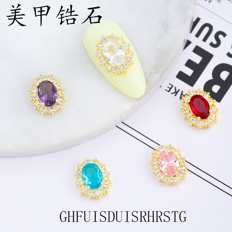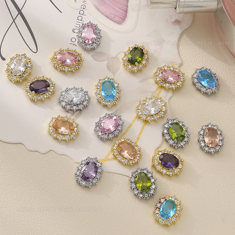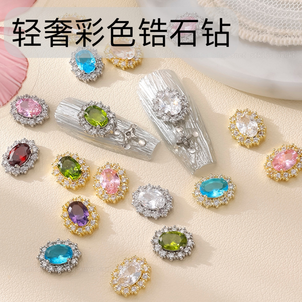 日本製高級ネイルアート用カラージルコニア、エメラルド、超キラキラ鳩卵型オーバルダイヤモンド、装着済みネイル用完成品ダイヤモンド卸売