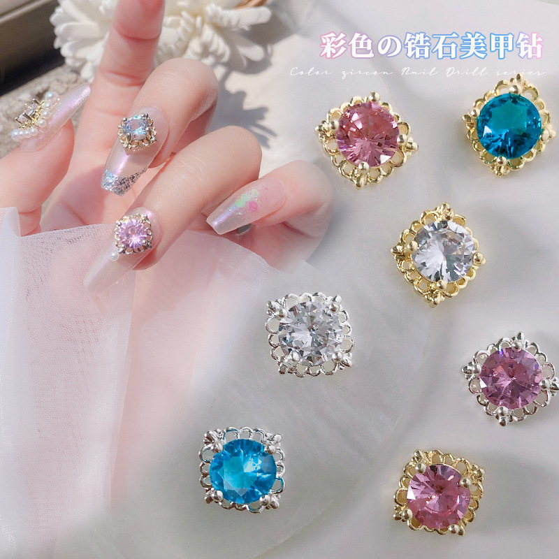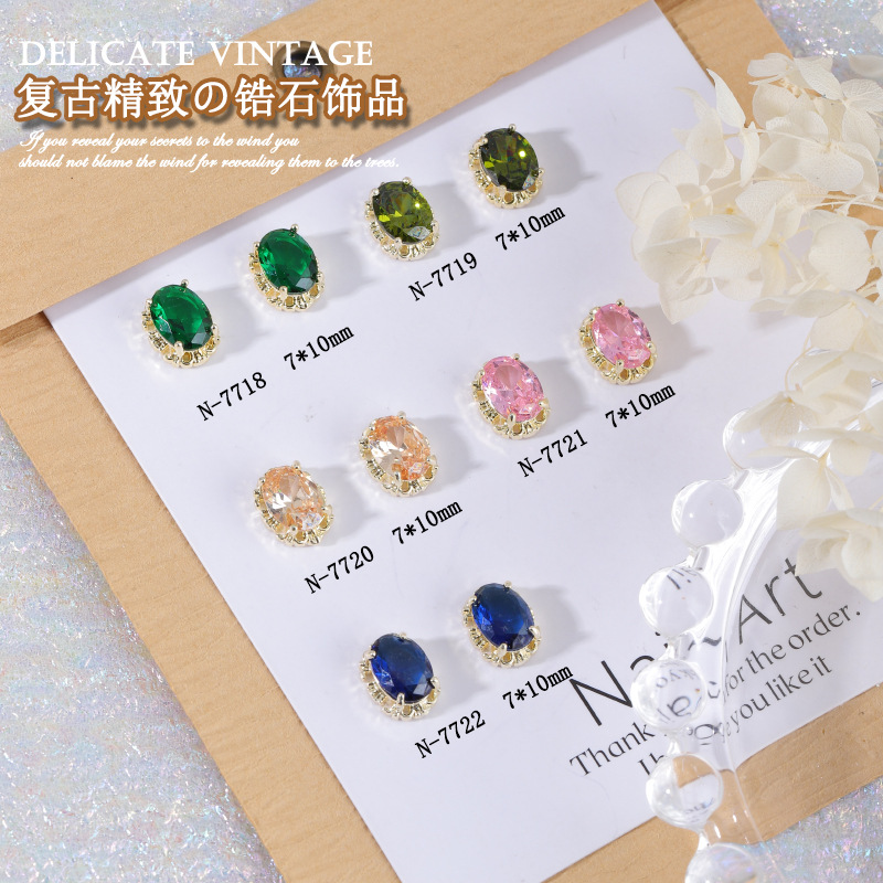 ネット赤爆金ネイルアートスクエアジルコンアクセサリー卸売りレトロな質感保色金属縁飾り宝石爪装飾