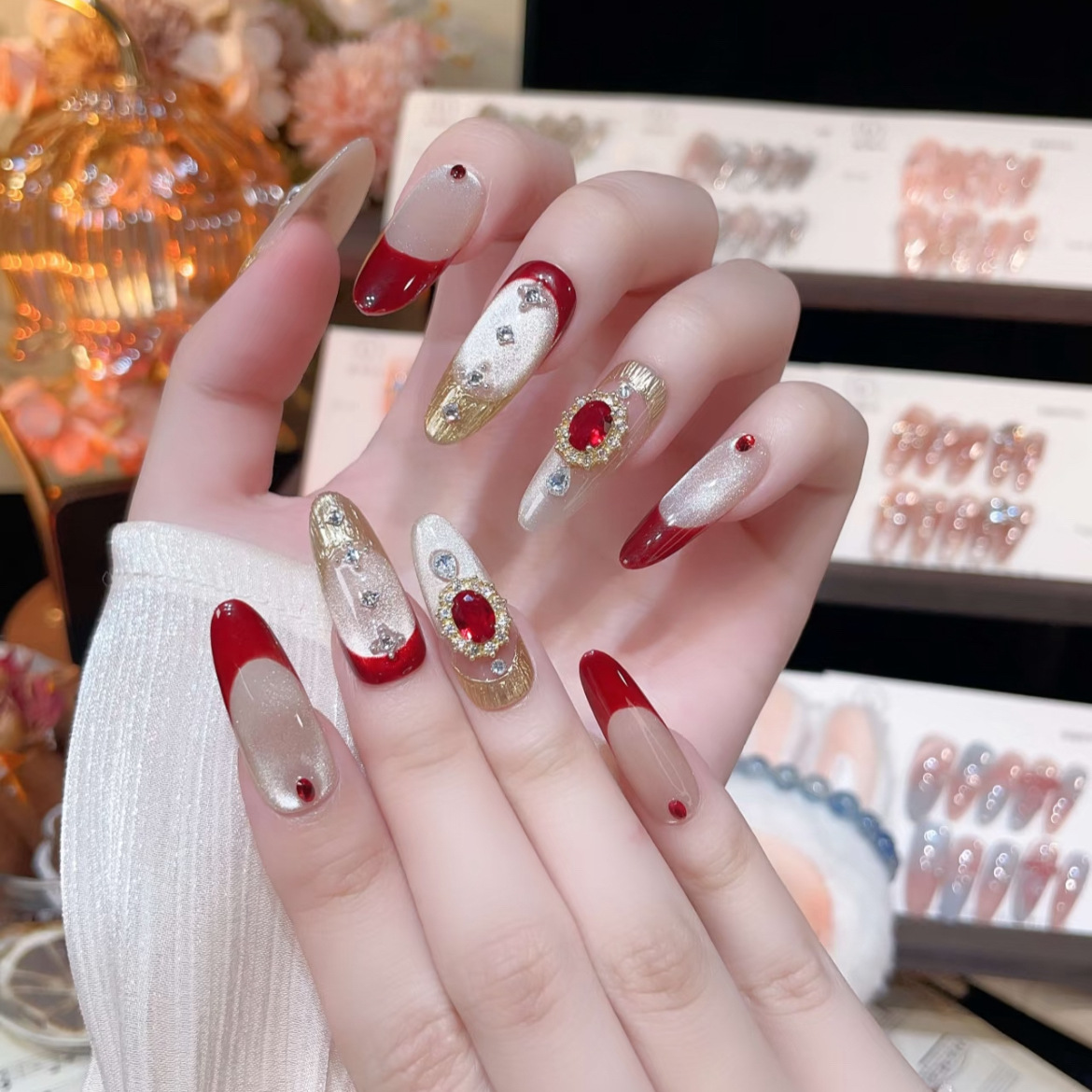 美甲钻464布契拉提合金属金色锆石美甲饰品复古宫廷风指甲配饰