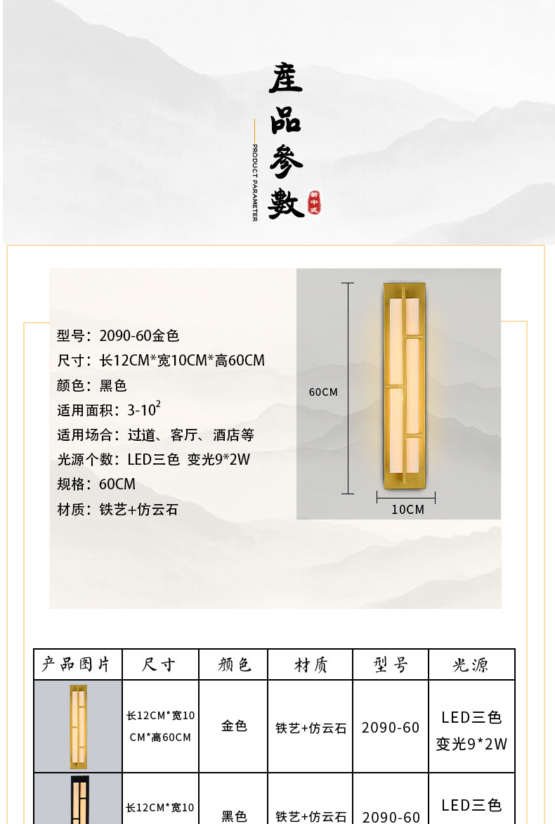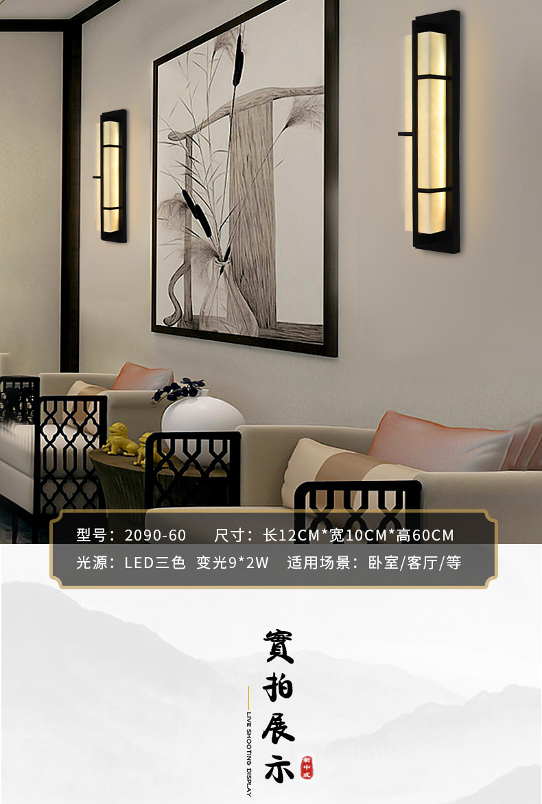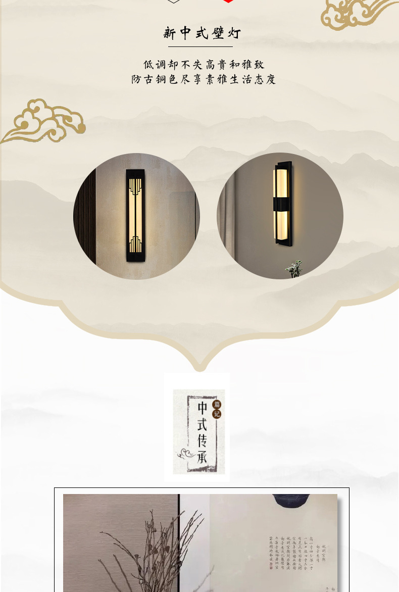 全銅の新しい中国式の擬雲石の壁の明かりの客間の明かりの家庭の大気の背景の壁のベッドの上の通路の階段の間の装飾
