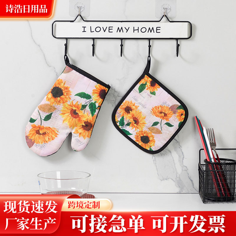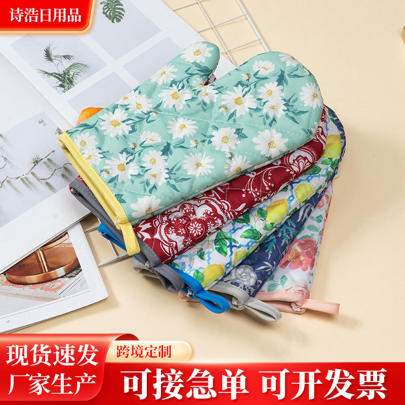 メーカーカスタムパーマ防止断熱花卉デジタルプリント手袋家庭用キッチン電子レンジオーブン高温手袋