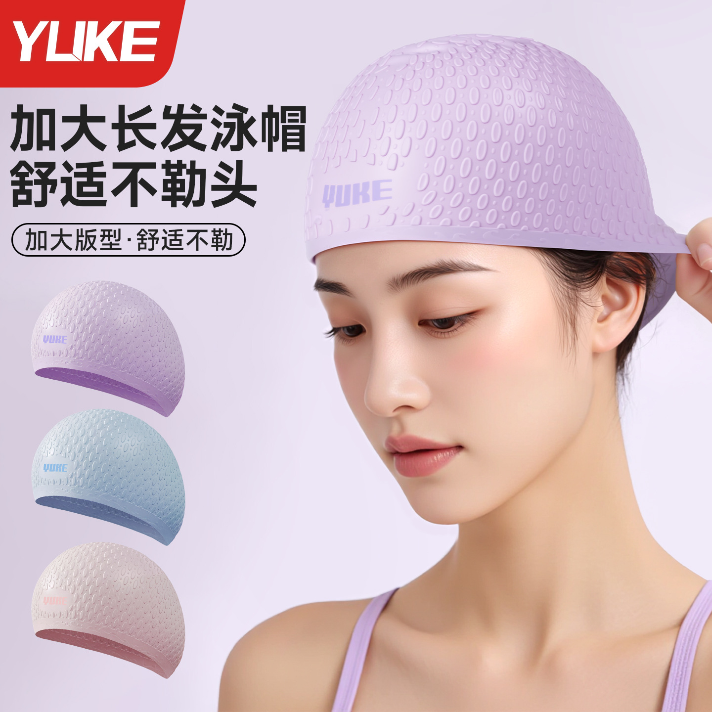 女性用スイミングキャップ、ロングヘア、大きめ、見栄えの良いシリコンキャップ、防水性と耐塩素性、大きな頭囲、男性用耳保護スイミングキャップ