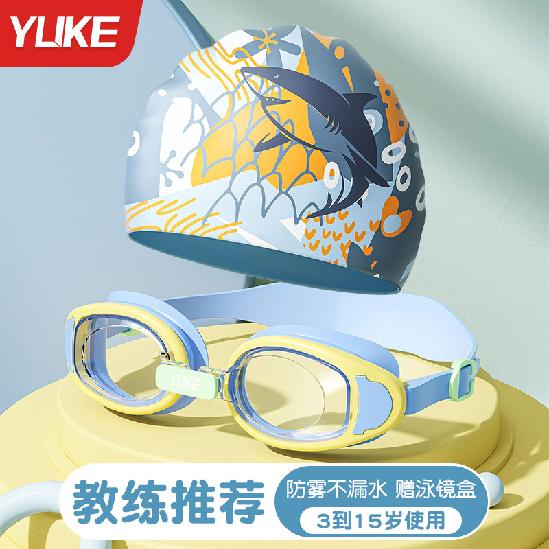 子供用ゴーグル男の子防水防霧ハイビジョン男の子ダイビングゴーグル水泳ゴーグル水泳帽子セット水泳装備