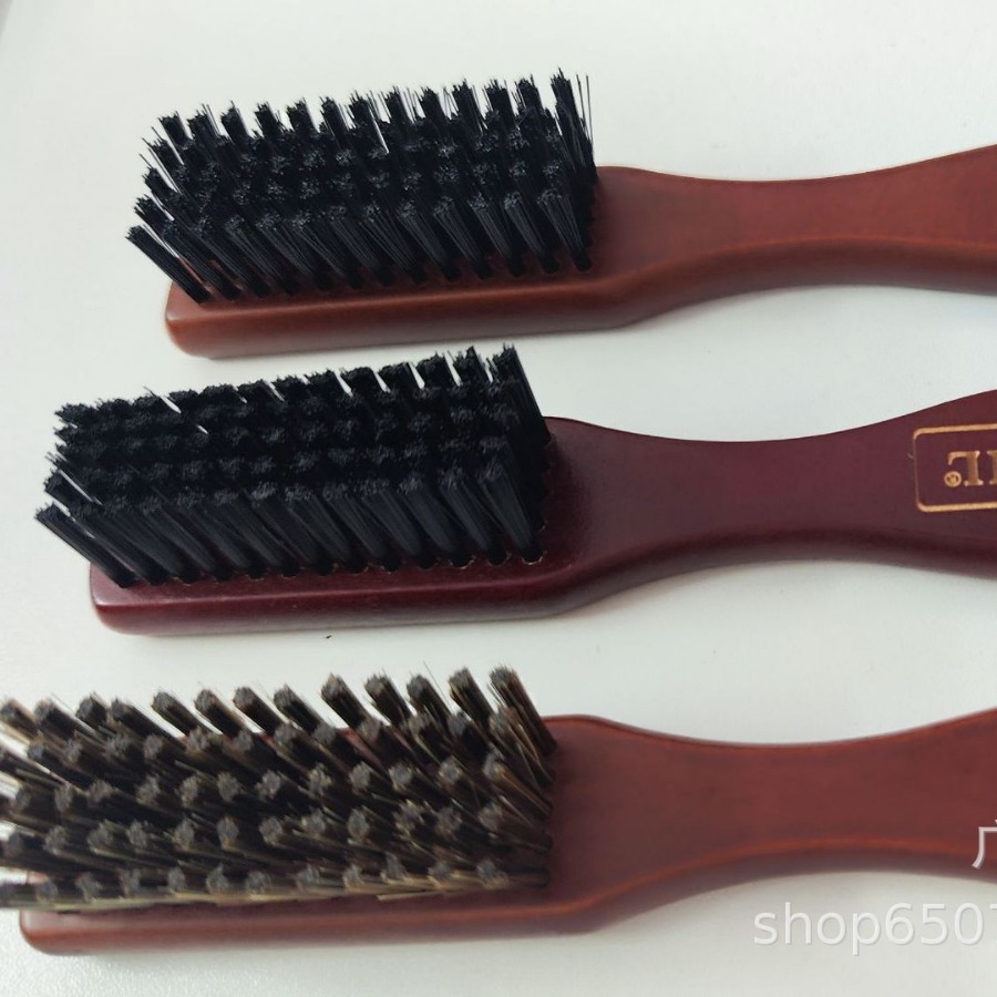 小さい木の取っ手の油の頭は男性のひげを磨いてひげを磨いて油の頭の櫛をこすります。
