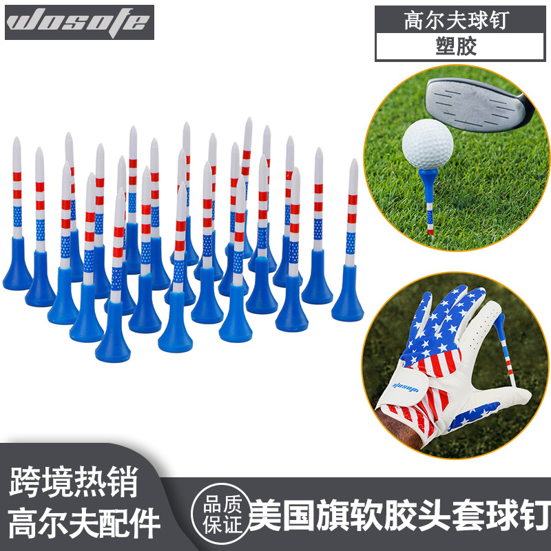 ゴルフの部品の新型のゴルフのディテールの83mmの国旗の図案のストライプのgolfの柔らかいゴムの帽子のプラスチックのボールの釘