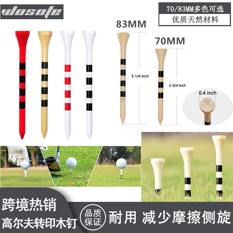 新品ゴルフスパイクカラーストライプ木製スパイク竹スパイクボールホルダーコートアクセサリー70/83mm