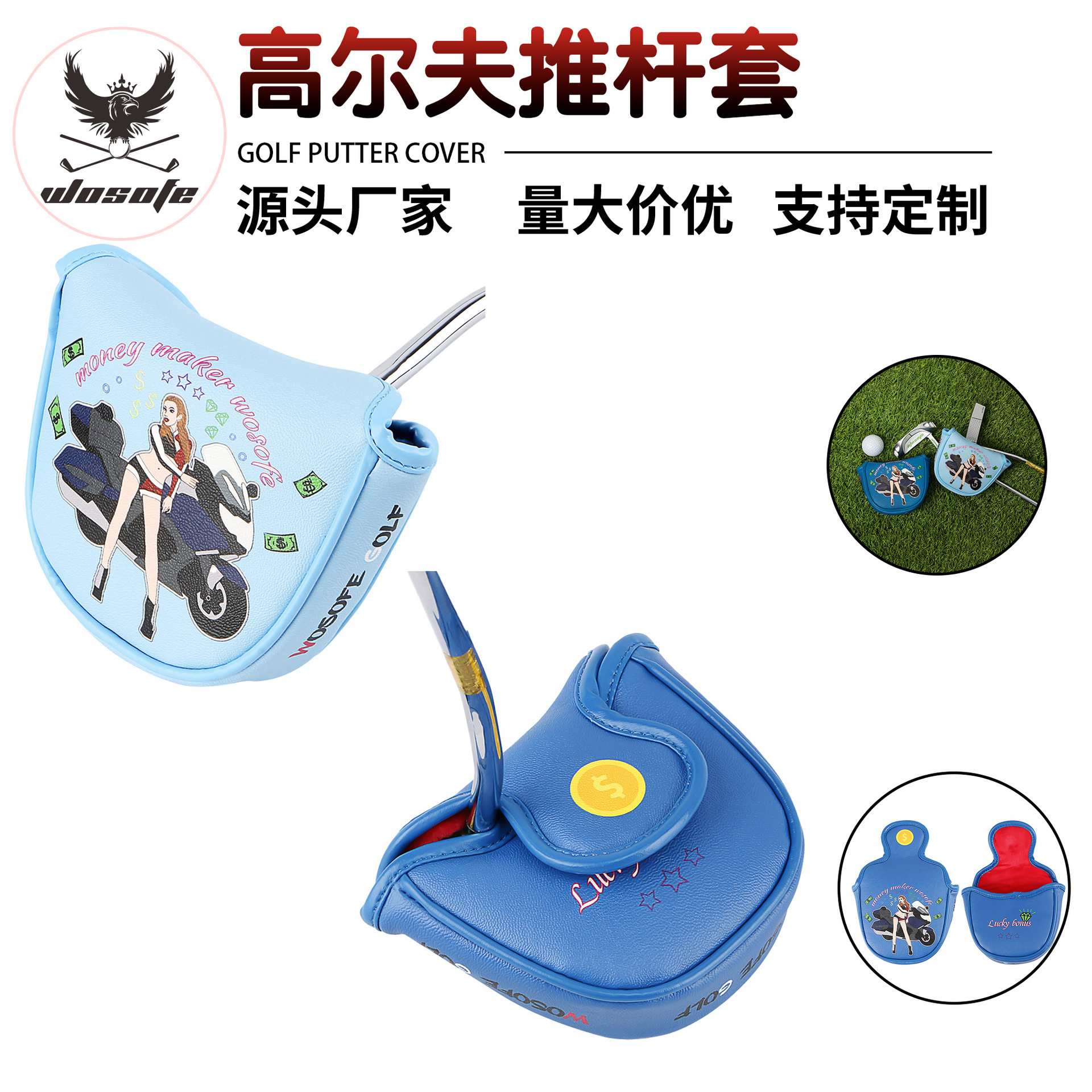 国境を越えた新しいゴルフクラブカバー GOLF パターカバー オートバイガール柄 PU 保護カバー 耐水性と耐摩耗性