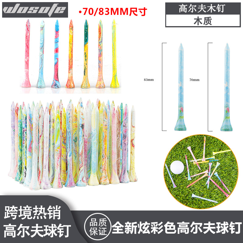 新しいゴルフボールのスパイクのゴルフのティーセットの70/83mmのまぶしい色の木のスパイクの席は国境を越えてよく売れています。