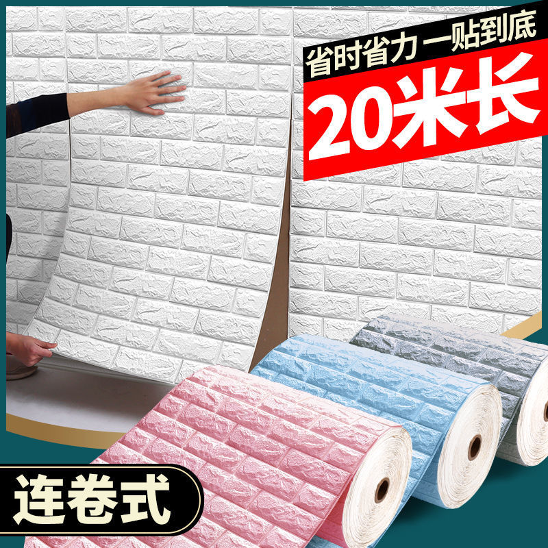 墙纸自粘防水防撞背景墙砖纹壁纸3d立体墙贴软包卧室宿舍泡沫贴纸