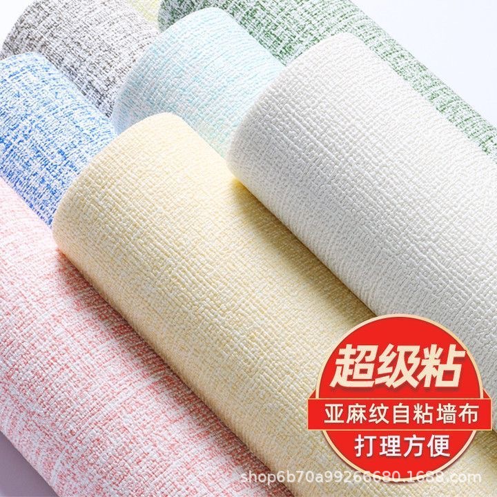 自己粘着リネンウォールステッカー寝室の部屋の壁の装飾ステッカーシンプルな無地の壁紙リビングルーム防水防湿壁紙