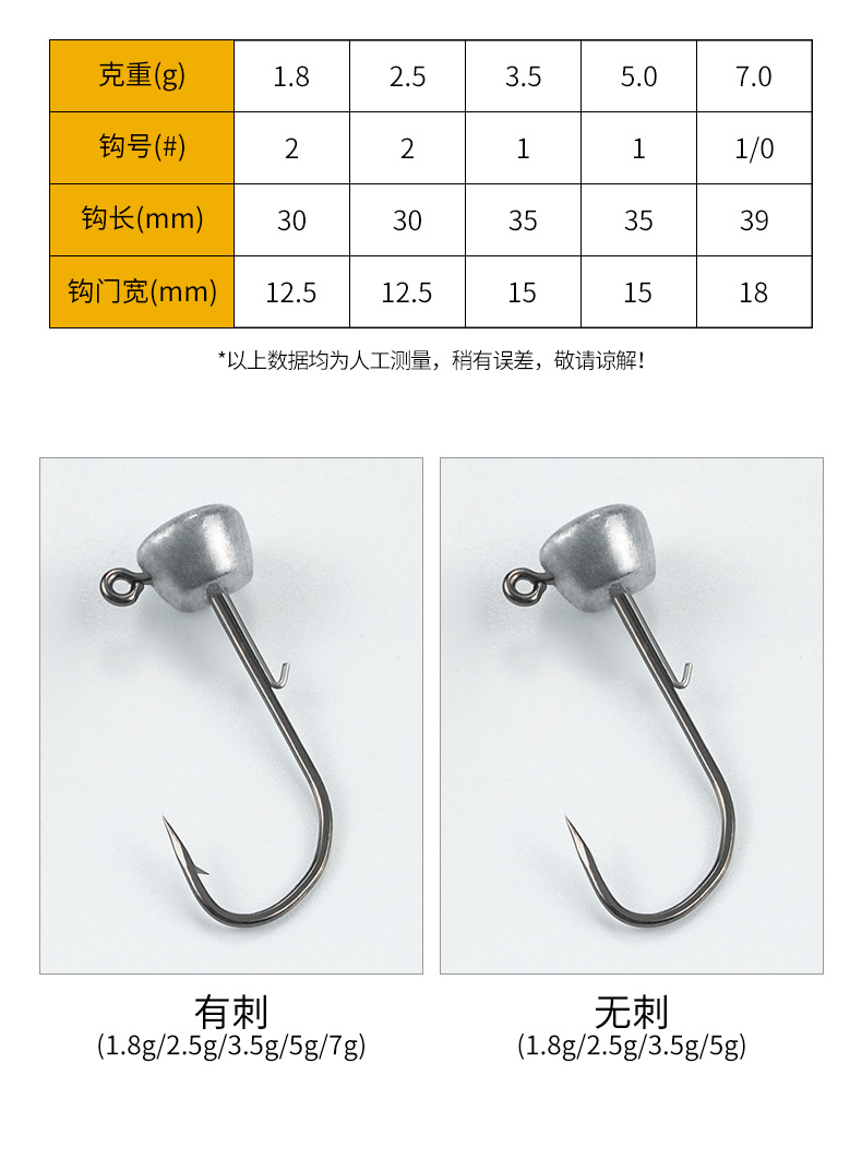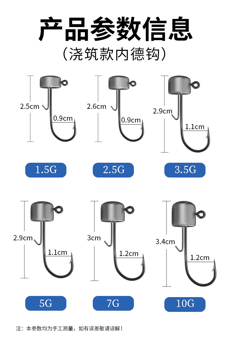 傲湖内徳鉛頭フック7g微物鉛頭フック偽餌路亜口スズキ強化血槽防脱内徳フック
