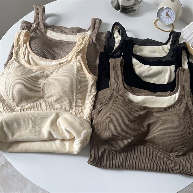 V领双面磨毛保暖背心女士带胸垫秋冬季新款修身内搭吊带打底上衣