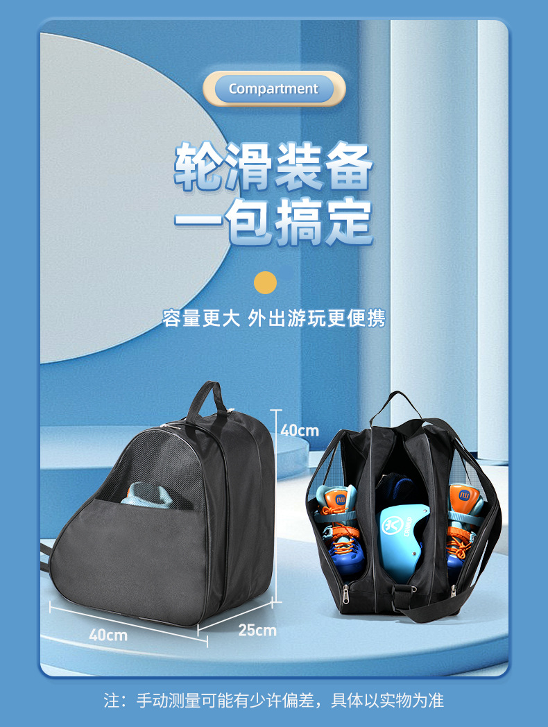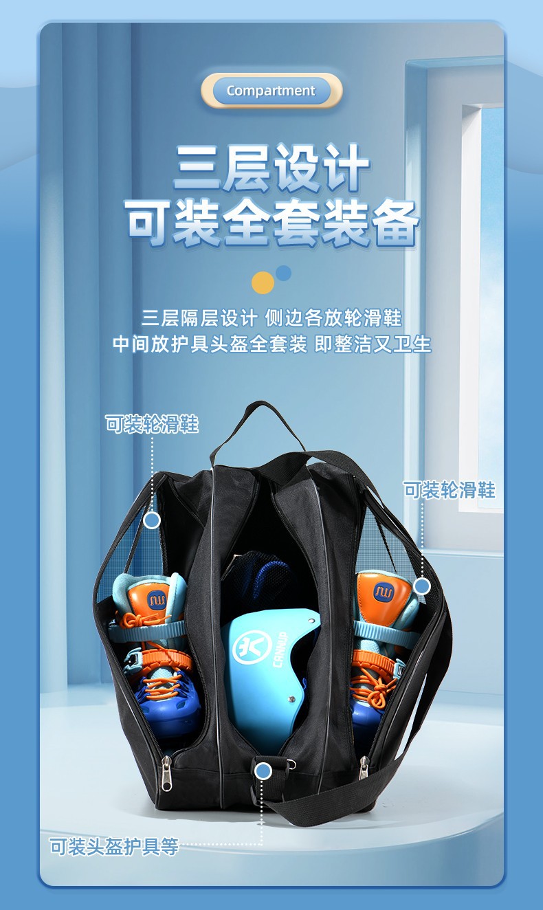 普通背包会小一点,鞋子太大的话不一定可以放得下,而且普通背包放不了头盔护具,只可以放鞋子;建议购买三层背包,什么款式的鞋子和头盔护具都可以放