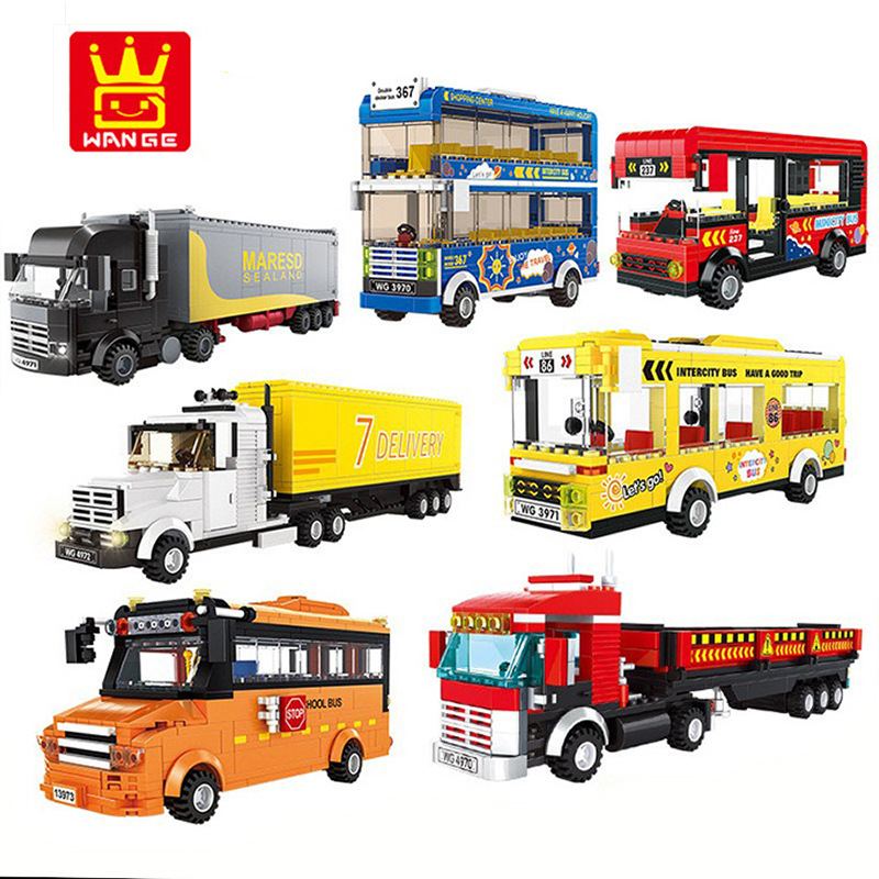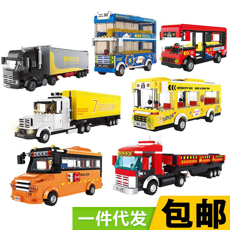 万格3970-5971交通機関クロスボーダー小粒自動車積み木DIY玩具境積み木玩具バス