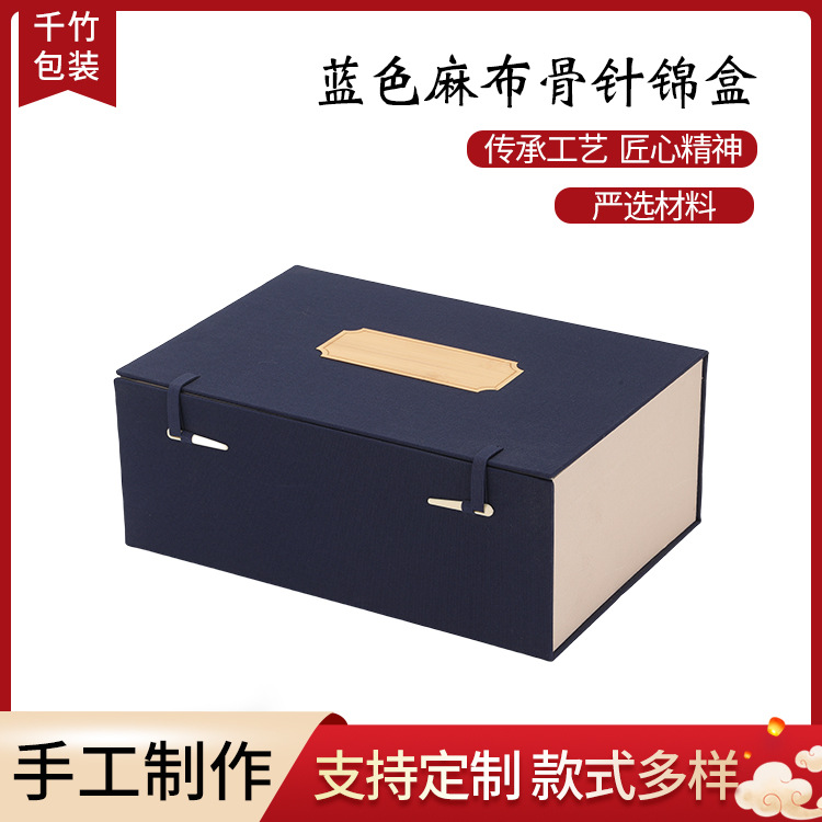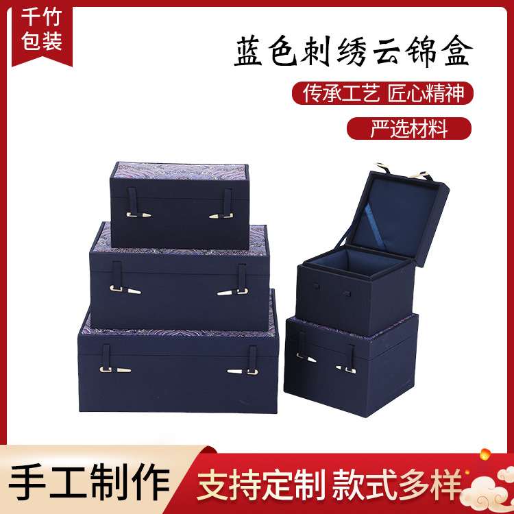 ブルー刺繍雲錦ギフトボックスシングルカップダブルカップティーポット磁器収納ボックス建物クラフトコレクション包装錦織ボックス