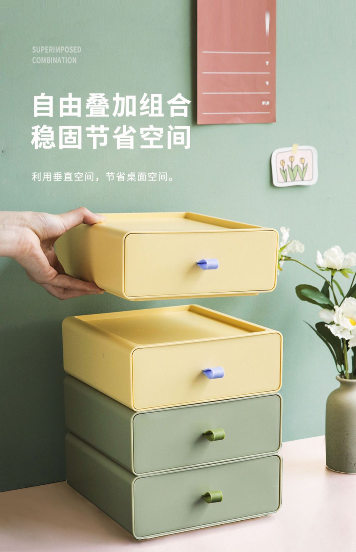 アクリルデスクトップ収納ボックス引き出し式重ね可能学生寮文房具整理化粧品収納棚